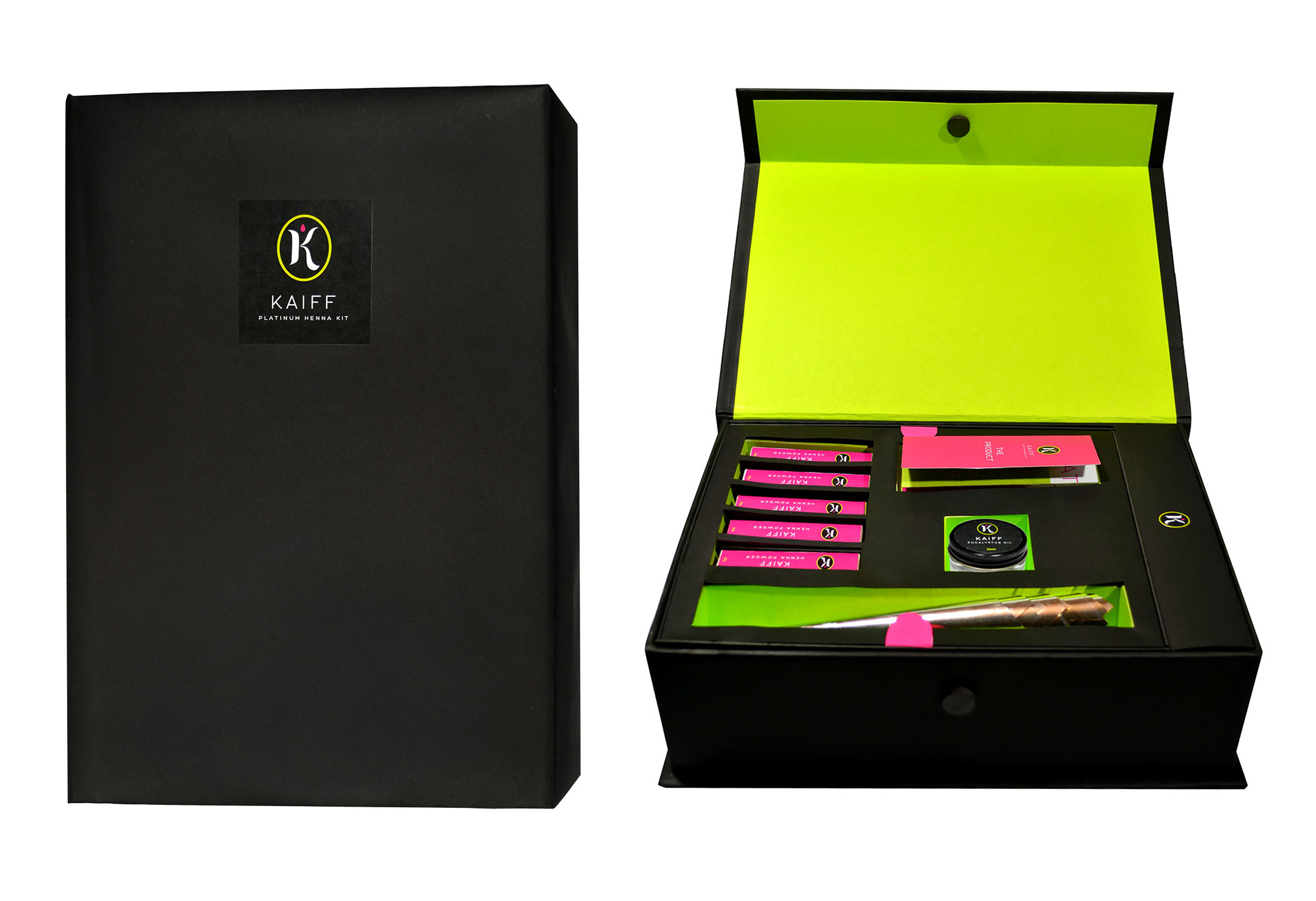Ornate freehand henna art and a beginner kit for aspiring artists.