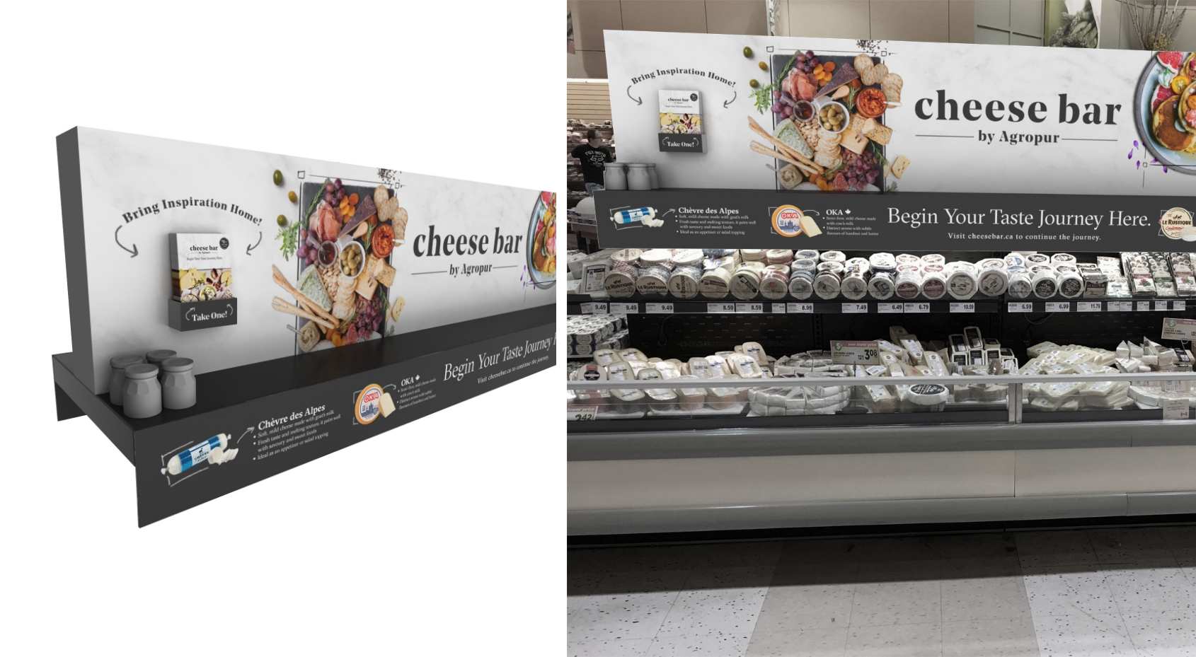 Brand development for Agropur's Cheese Bar platform for digital, print and in-store executions. Success of holiday pitch led to further programs, requiring photography direction and UI / UX web support.