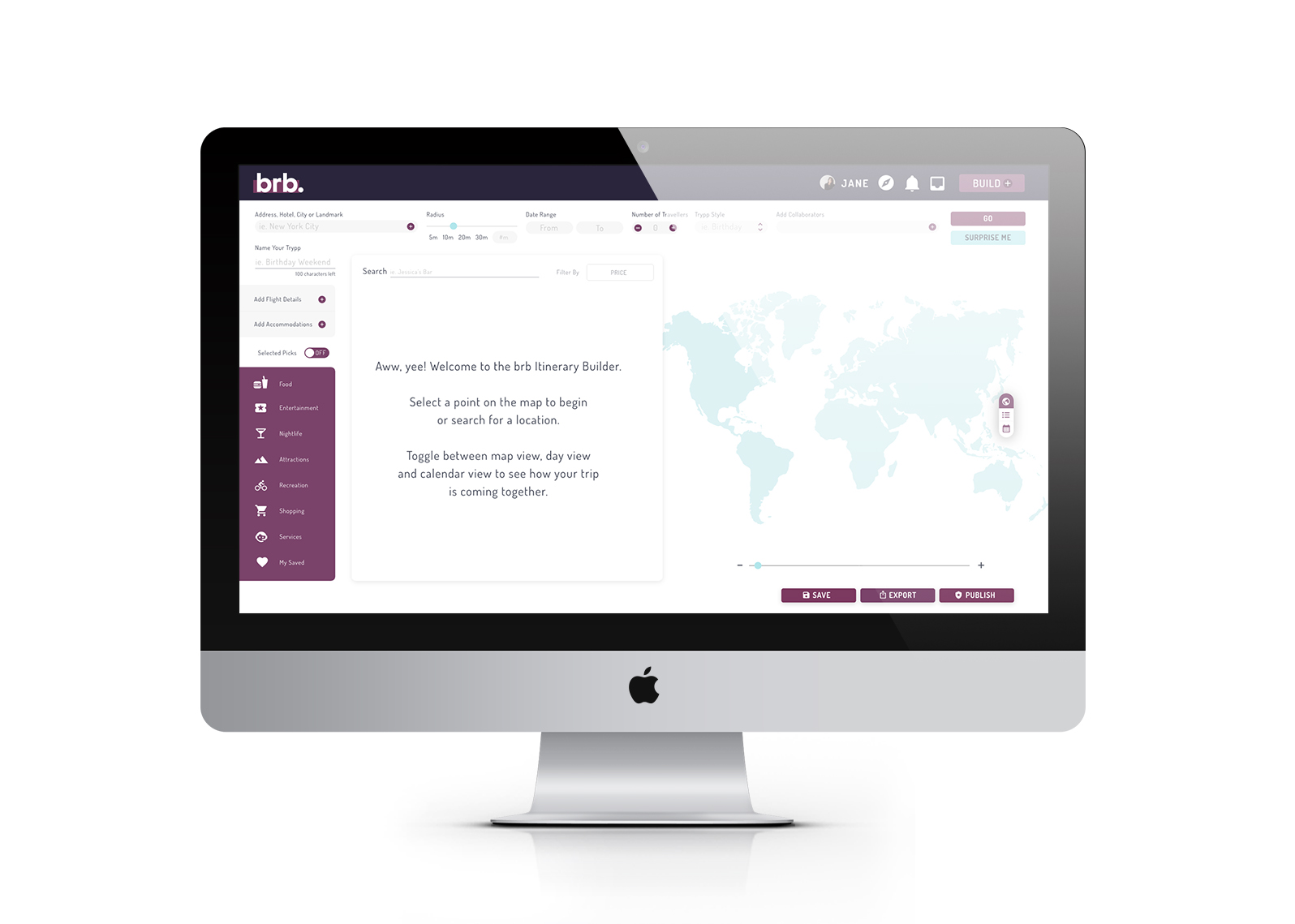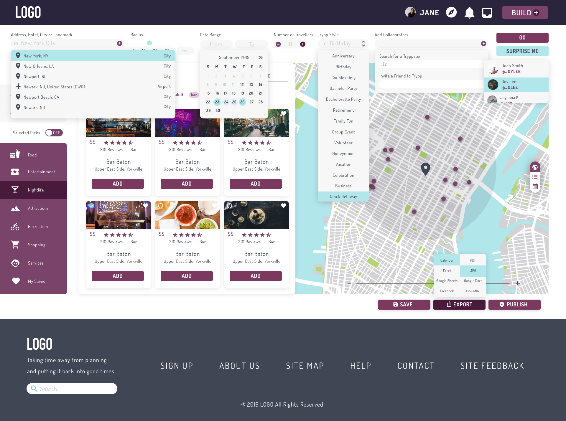 Branding and UI / UX design for an all-in-one travel platform for users to to plan trips, build itineraries and share them on the site's social feature.