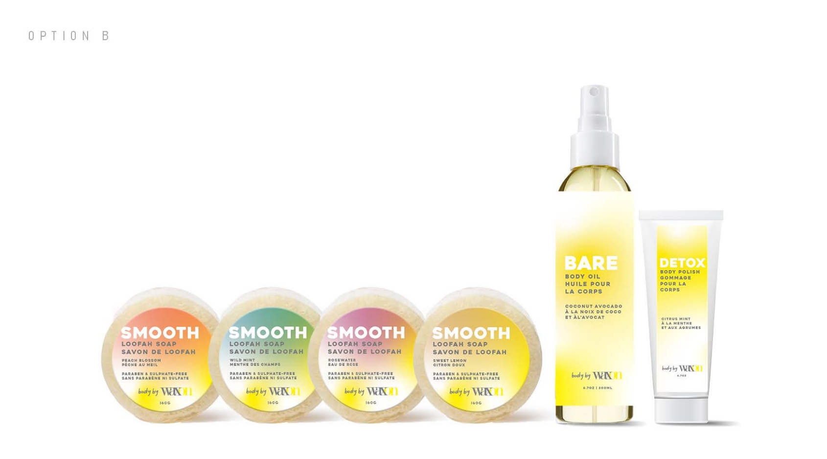 Logo development and packaging for a collection of body products for a Toronto-based health & wellness company.